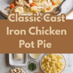 This Cast Iron Skillet Chicken Pot Pie is a hearty one-pan meal featuring a creamy chicken and vegetable filling encased in a golden, flaky puff pastry crust. Perfect for comforting dinners, this recipe combines tender chicken, diced potatoes, peas, and aromatic herbs for a warm, satisfying dish.