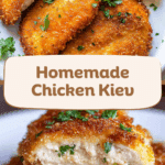 Chicken Kiev is a classic dish featuring tender chicken breasts filled with a rich lemon-herb garlic butter, coated in a crispy golden breadcrumb crust. When sliced open, the hot, melted butter pours out in a stream of flavor, making each bite juicy and unforgettable. With this simplified method, you can easily prepare this impressive dish right at home in under an hour.