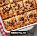 This recipe yields 12 generous bars, making it a great portion size for sharing at small gatherings or family dinners. Preparation time is delightfully short — just 10 minutes to mix everything and get it in the oven. Baking takes about 28 minutes, and I always allow another 30 to 60 minutes for cooling so the bars hold together well when cut. In total, you’re looking at around 38 to 45 minutes from start to finish, which is pretty quick for a dessert that feels so indulgent.