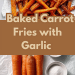 Crispy and flavorful carrot fries baked to perfection, offering a healthier alternative to traditional fries. These carrot fries are lightly coated with olive oil, cornstarch, and garlic granules, then baked until golden and crispy for a delicious snack or side dish.