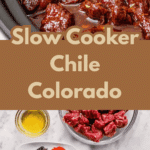This Crockpot Chile Colorado recipe features tender chunks of beef chuck roast slow-cooked in a rich and flavorful red chile sauce made from dried guajillo, ancho, and arbor chiles. The dish is infused with Mexican spices and aromatics, creating a hearty and comforting meal perfect for a satisfying dinner.