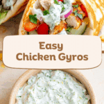 These Easy Chicken Gyros are made with tender marinated chicken, fresh vegetables, and warm pita bread, all topped with creamy homemade tzatziki sauce. A flavorful and healthy Greek-inspired meal perfect for lunch or dinner.