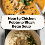 A hearty and creamy small-batch chicken, poblano, and black bean soup packed with tender shredded chicken, sautéed poblano peppers, black beans, and corn, simmered in a flavorful broth and finished with a touch of cream and cheese. Perfectly spiced with a homemade seasoning blend, this comforting soup is quick to make and serves six.