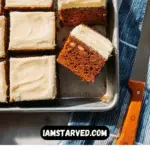 Step 9: Once the cake is fully cool, use an offset spatula or the back of a spoon to evenly spread the frosting all over the top. Slice into 12 to 16 squares, depending on your serving size preference, and enjoy!