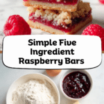Delight in these easy and delicious Five Ingredient Raspberry Bars featuring a buttery shortbread crust, a layer of sweet seedless raspberry jam, and a crumbly topping. Perfect as a homemade summer dessert, these bars come together quickly with minimal ingredients for a satisfying treat.
