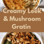 This vegan and gluten-free Leek Mushroom Gratin is a creamy, comforting dish featuring sautéed leeks and wild mushrooms baked in a luscious cashew cream sauce. Topped with crispy herbed bread crumbs, it’s perfect as a hearty side or a satisfying main.
