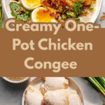 This comforting One-Pot Chicken Congee recipe combines tender chicken thighs simmered with sushi rice, fresh ginger, and scallions to create a silky, flavorful porridge. Perfectly balanced with crispy chicken skin and garnished with aromatic toppings, this nourishing dish is ideal for a cozy meal.