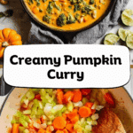 This vibrant Pumpkin Curry is a comforting dinner dish featuring tender chicken thighs simmered in a creamy coconut and pumpkin sauce infused with yellow curry paste, fresh ginger, and lime zest. Loaded with nutritious vegetables like broccoli and carrots, and served with jasmine rice or cauliflower rice, it’s a perfect balance of sweet, savory, and tangy flavors enhanced by toasted nuts and fresh cilantro. Ideal for a cozy night in, this curry delivers warmth and depth with a subtle hint of spice.