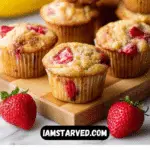 Deliciously moist and healthy vegan strawberry banana muffins made with wholesome ingredients like mashed bananas, fresh strawberries, and your choice of flour. These muffins are naturally sweetened, easy to prepare, and perfect for a nutritious breakfast or snack.