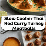Delight in these Thai-Inspired Red Curry Turkey Meatballs, a flavorful, Paleo and Whole30 compliant dish perfect for slow cooker fans. Tender turkey meatballs are combined with a rich, spiced red curry sauce made with coconut milk, cashew butter, and aromatic Thai flavors. This comforting meal is ideal served over zucchini noodles or cauliflower rice for a wholesome, satisfying dinner.
