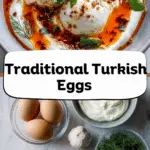 Turkish Eggs, or Cilbir, is a simple yet flavorful Middle Eastern breakfast or brunch dish featuring creamy garlicky yogurt topped with perfectly poached eggs and a spiced melted butter drizzle. This quick recipe combines fresh herbs, tangy yogurt, and a silky poached egg to create a delicious meal that’s perfect to start your day with.