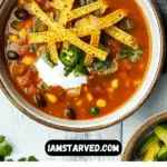 - Serve hot in bowls, topped with crispy tortilla strips and any optional toppings.