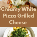 This White Pizza Grilled Cheese combines the rich creaminess of mascarpone infused with roasted garlic and fresh herbs, layered with a blend of sharp provolone, mozzarella, and parmesan cheeses, all sandwiched between thick slices of Italian or sourdough bread and grilled to golden perfection. It offers a sophisticated twist on a classic comfort food, bursting with herbaceous flavor and melty cheesy goodness.